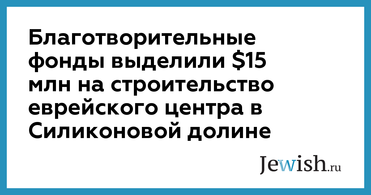 Два еврейских благотворительных фонда выделят 15 миллионов долларов, на строительство еврейского центра в калифорнийской Силиконовой долине.