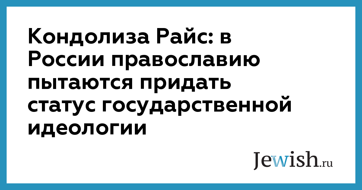 Кондолиза Райс: в России православию пытаются придать статус государственной идеологии
