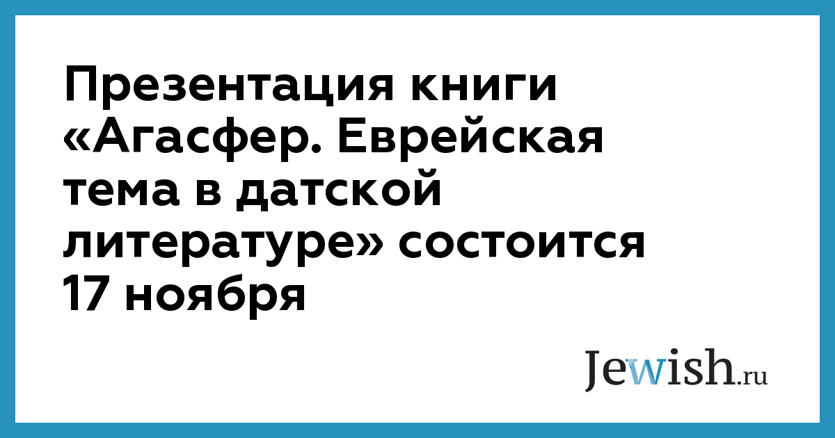 Презентация книги «Агасфер. Еврейская тема в датской литературе» состоится 17 ноября