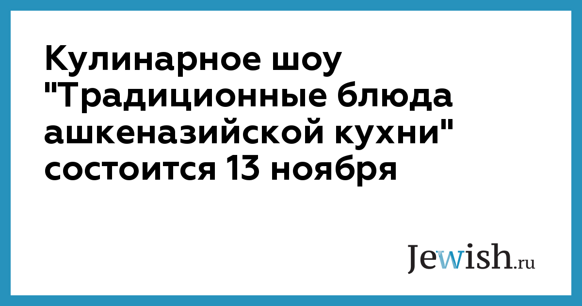 Кулинарное шоу "Традиционные блюда ашкеназийской кухни" состоится 13 ноября