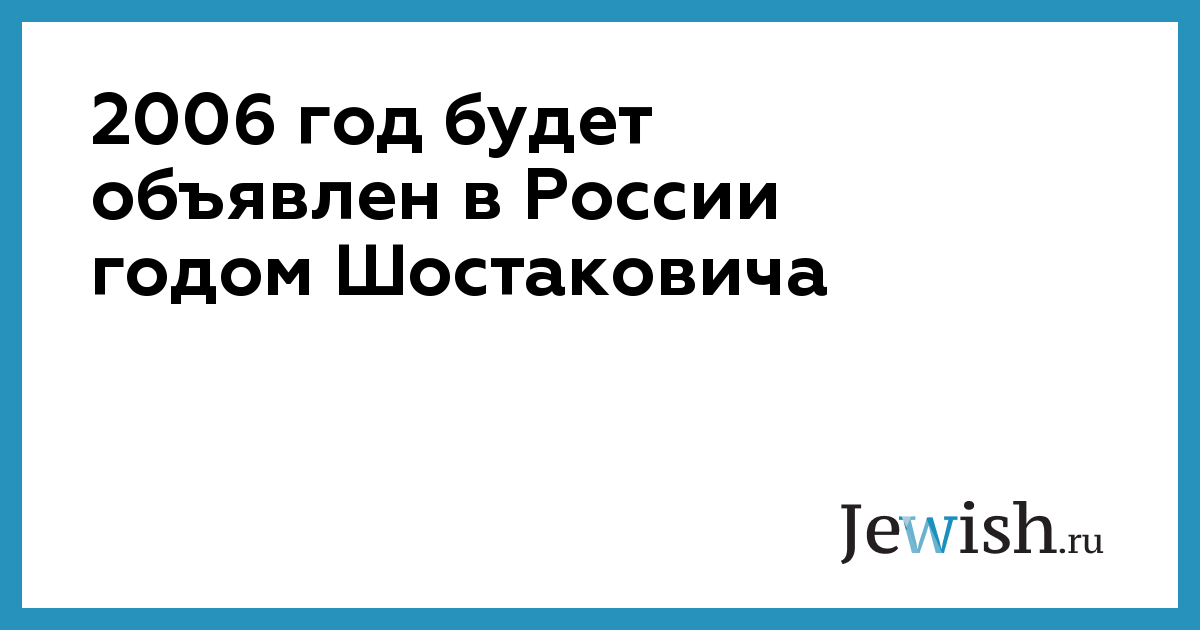 Следующий год в России будет объявлен годом Шостаковича. Об этом сообщил руководитель Федерального агентства по культуре и кинематографии Михаил Швыдкой.