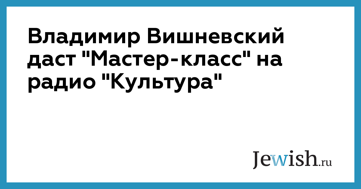 Владимир Вишневский даст "Мастер-класс" на радио "Культура"
