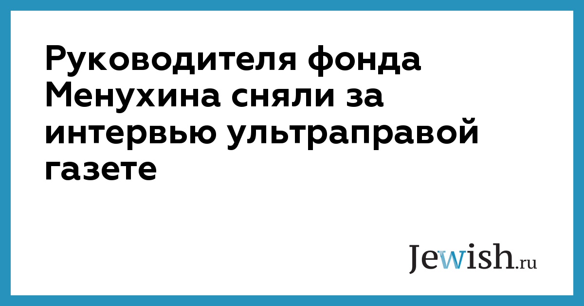 Руководителя фонда Менухина сняли за интервью ультраправой газете