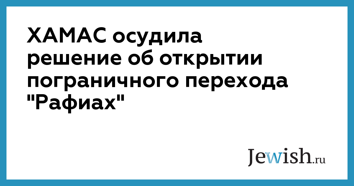 Исламская экстремистская группировка ХАМАС с осуждением отнеслась к решению об открытии пограничного перехода "Рафиах". Договоренность об этом была достигнута во вторник между руководством ПА и Израилем при посредничестве американской стороны. По словам ХАМАСовцев, данное соглашение идет в разрез с национальными притязаниями и чаяниями палестинцев.