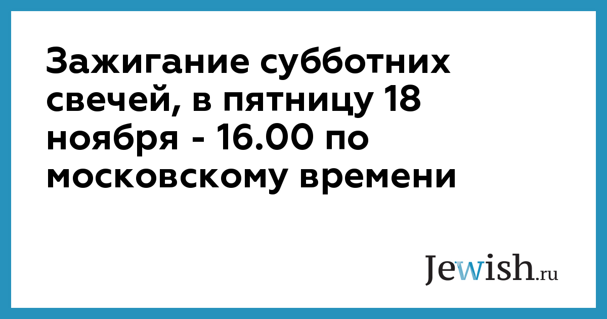 Зажигание субботних свечей, в пятницу 18 ноября — 16.00 по московскому времени