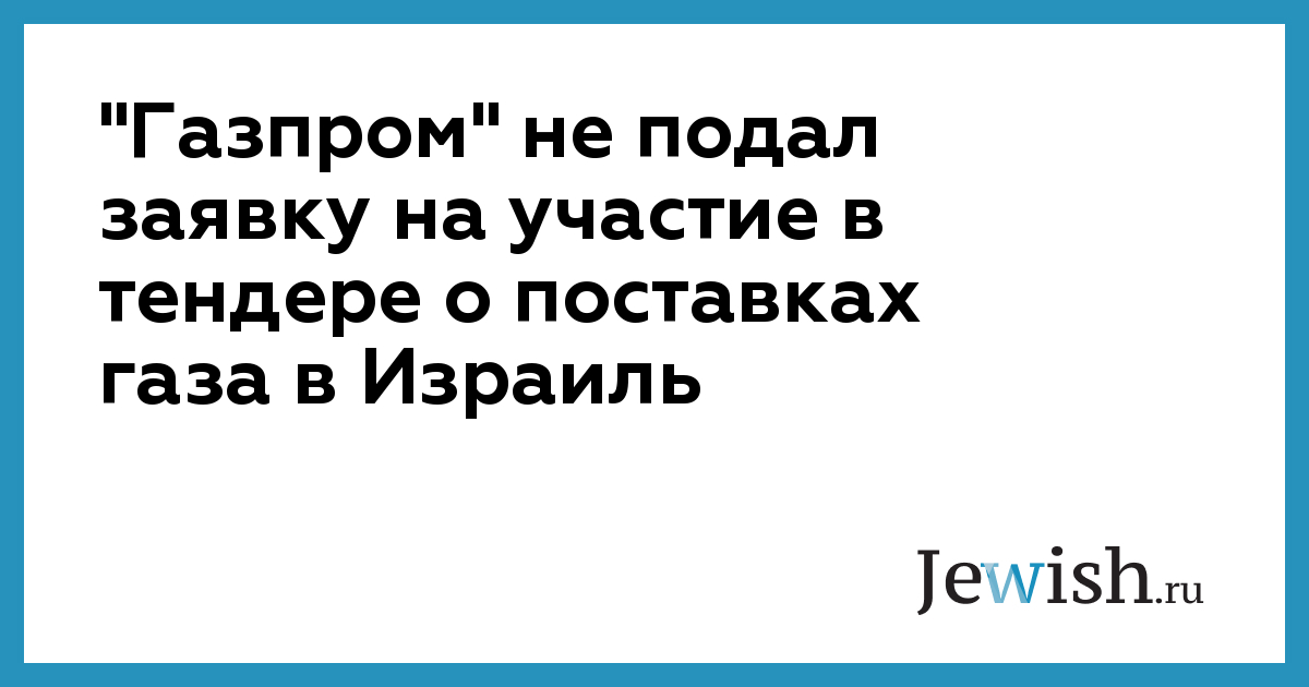 "Газпром" не подал заявку на участие в тендере о поставках газа в Израиль