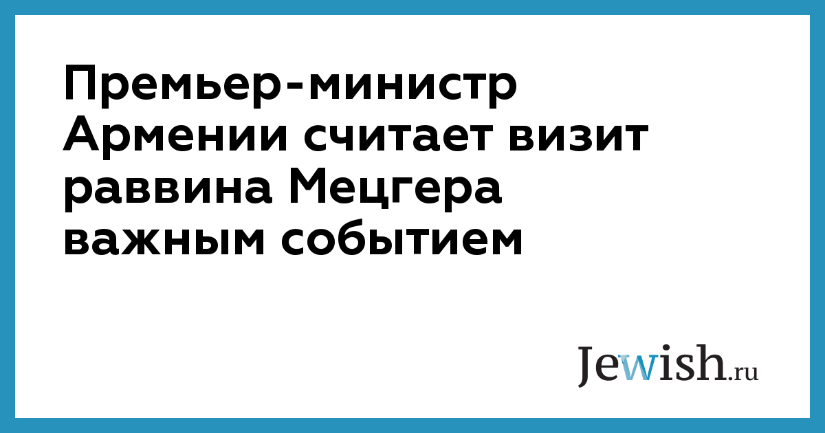 Премьер-министр Армении считает визит раввина Мецгера важным событием