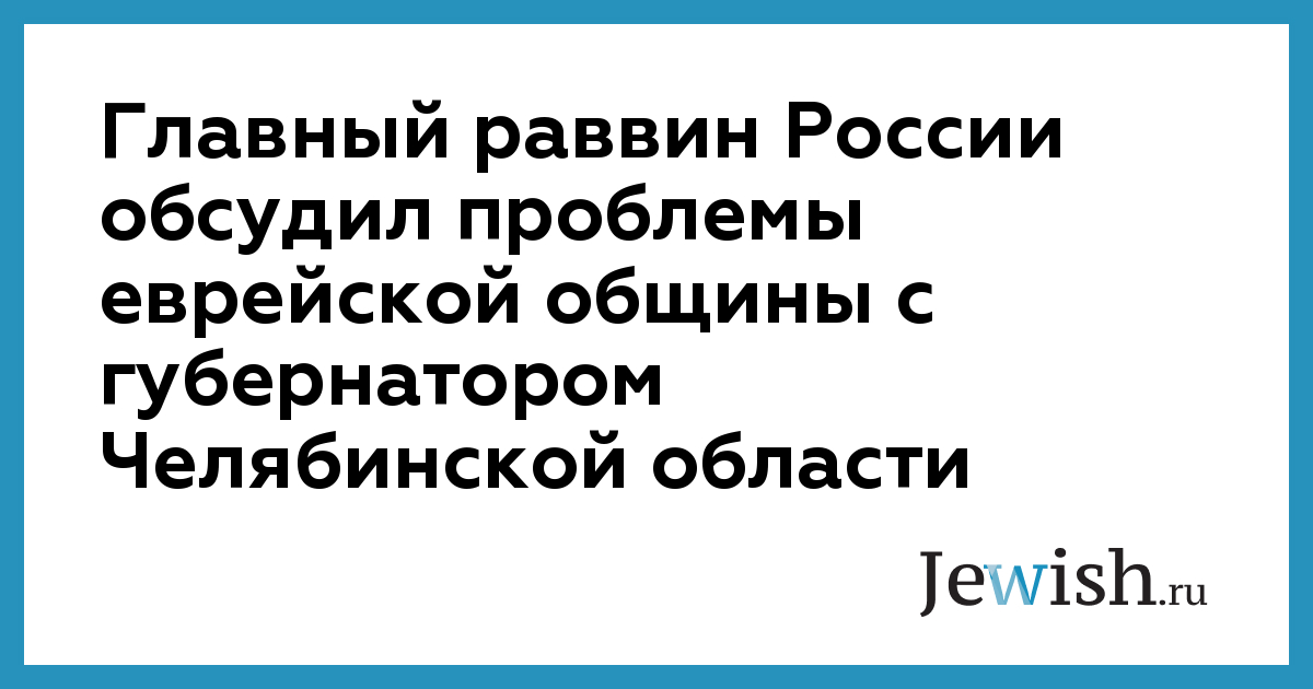 Главный раввин России обсудил проблемы еврейской общины с губернатором Челябинской области