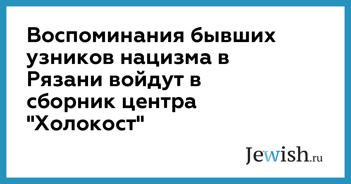 Воспоминания бывших узников нацизма в Рязани войдут в сборник центра "Холокост"