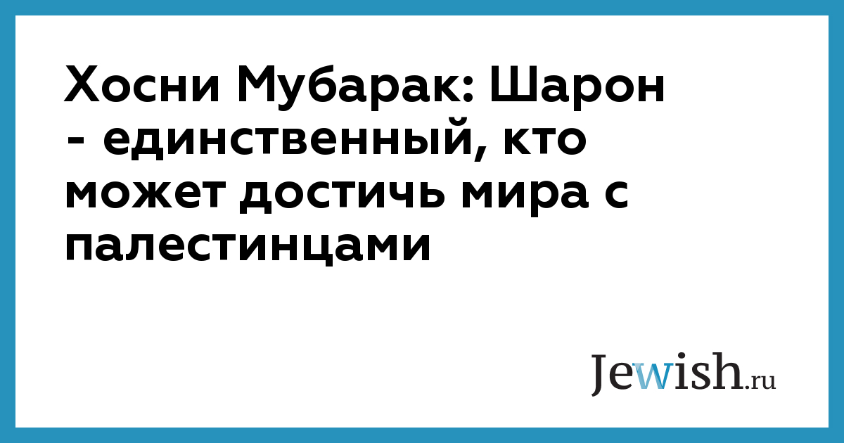 Хосни Мубарак: Шарон — единственный, кто может достичь мира с палестинцами