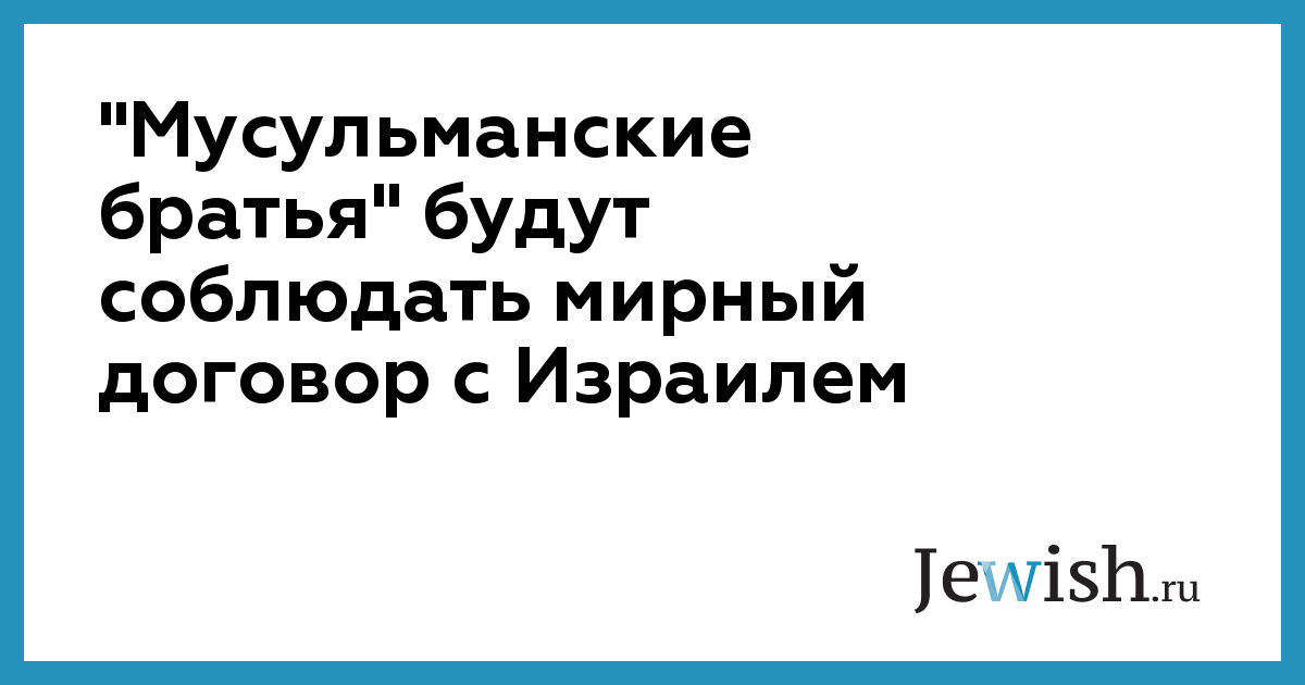 "Мусульманские братья" будут соблюдать мирный договор с Израилем