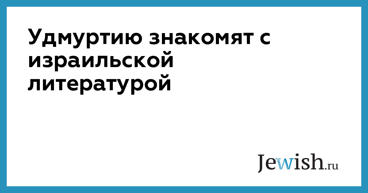 Во вторник 29 ноября в Национальной библиотеке Удмуртии в рамках традиционного фестиваля еврейской книги открывается выставка «Литературная панорама Израиля», подготовленная совместно с республиканским Общинным центром еврейской культуры. В церемонии открытия примут участие представители израильского посольства в Москве, министерства национальной политики Удмуртской Республики и национальных общественных объединений, а также литературоведы. Юные артисты выступят с музыкально-поэтической программой на иврите.
