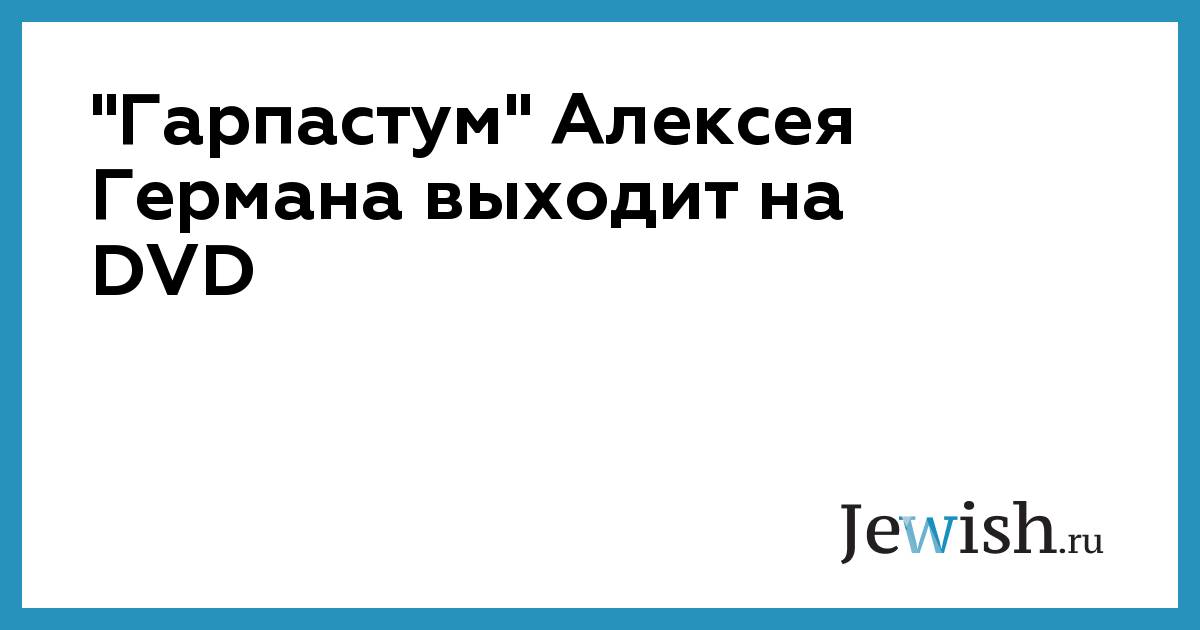 С первого декабря выходит на DVD фильм Александра Германа-младшего «Гарпастум», участвовавший в основной конкурсной программе Венецианского фестиваля 2005 года.