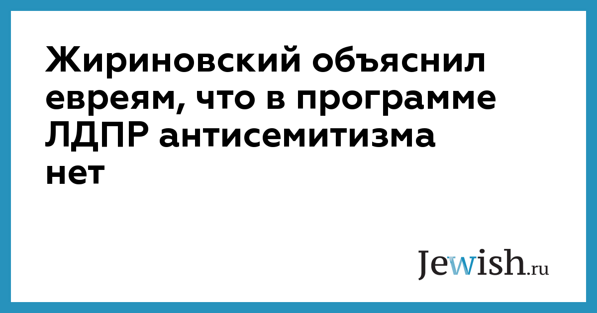 «Я всегда, где только могу, заявляю, что евреи – народ талантливый. Хорошо, что они живут в России, они много делают для этой страны. Многие уехавшие евреи жалеют об этом и хотели бы вернуться. И мы поддерживаем такие решения. И ни в моих взглядах, ни в программных документах ЛДПР нет даже намека на антисемитизм», — подчеркнул Владимир Жириновский.