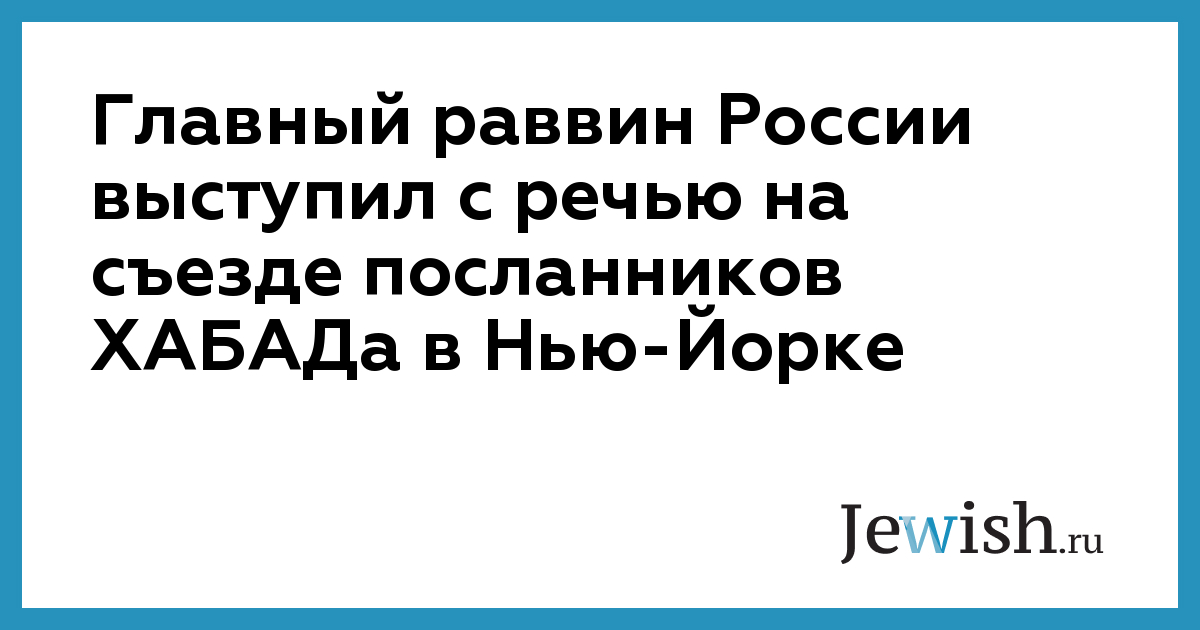 Главный раввин России выступил с речью на съезде посланников ХАБАДа в Нью-Йорке