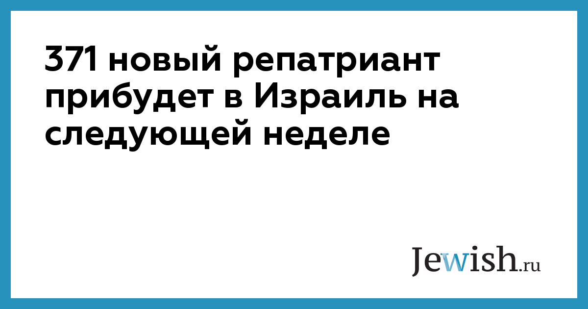 На следующей неделе в Израиль прибудет 371 новый репатриант. Из стран бывшего СССР в Израиль прибудут 170 новых граждан страны, в том числе 87 из России и 55 из Украины.