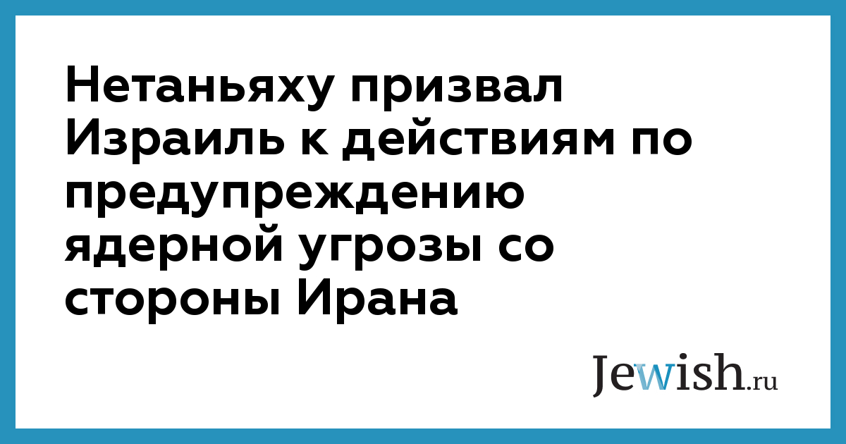 Бывший премьер-министр Израиля Биньямин Нетаньяху призвал Израиль к решительным действиям по предупреждению ядерной угрозы со стороны Ирана.