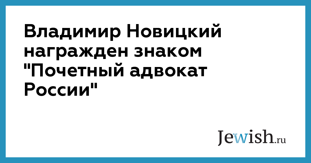 Адвокат, юридический директор Московского бюро по правам человека Владимир Новицкий награжден знаком "Почетный адвокат России". Комитет по награждению адвокатскими наградами имени Ф.Н.Плевако отметил его "высокое профессиональное мастерство, успехи в защите конституционных прав граждан и юридических лиц".