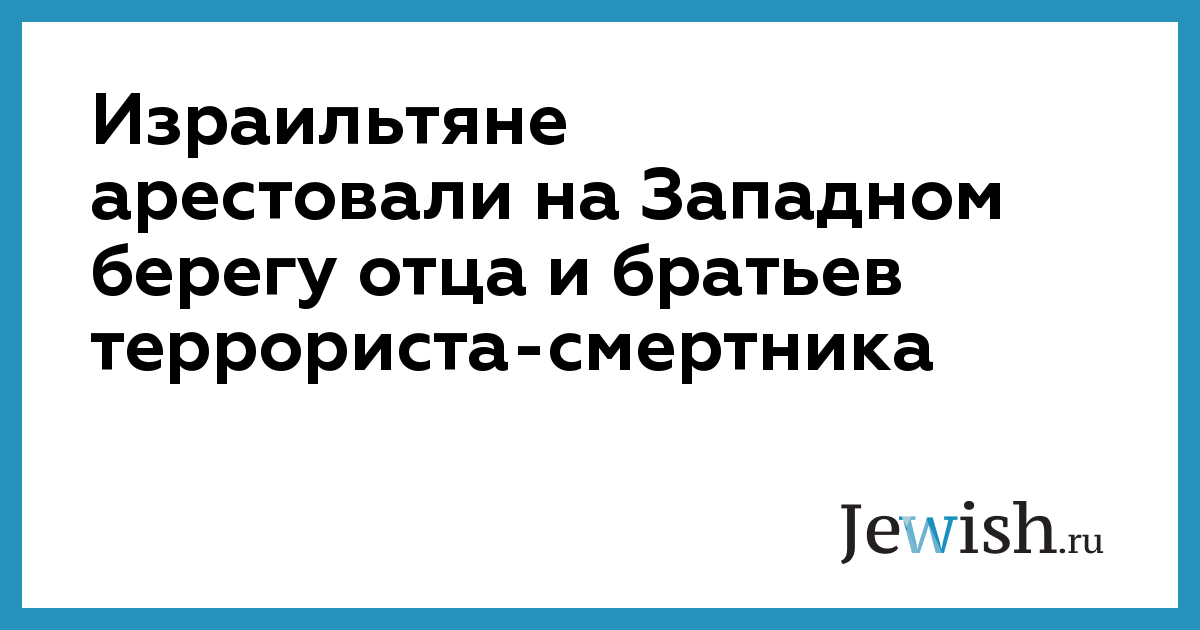 Израильтяне арестовали на Западном берегу отца и братьев террориста-смертника