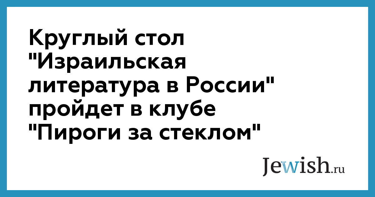 Круглый стол "Израильская литература в России" пройдет в клубе "Пироги за стеклом"