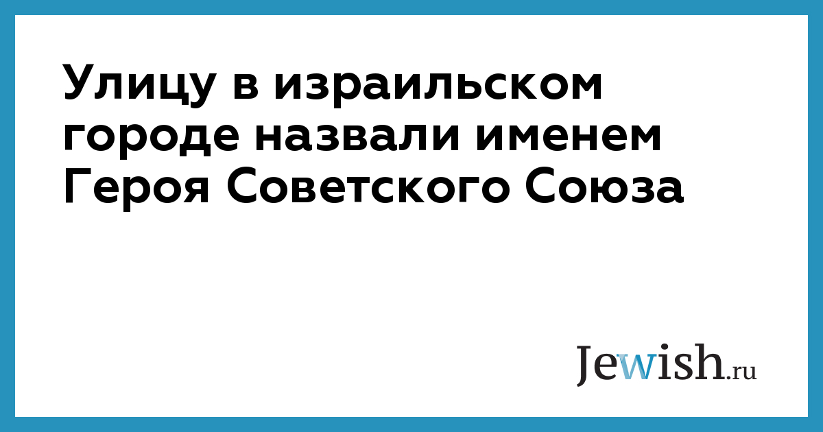 Улицу в израильском городе назвали именем Героя Советского Cоюза