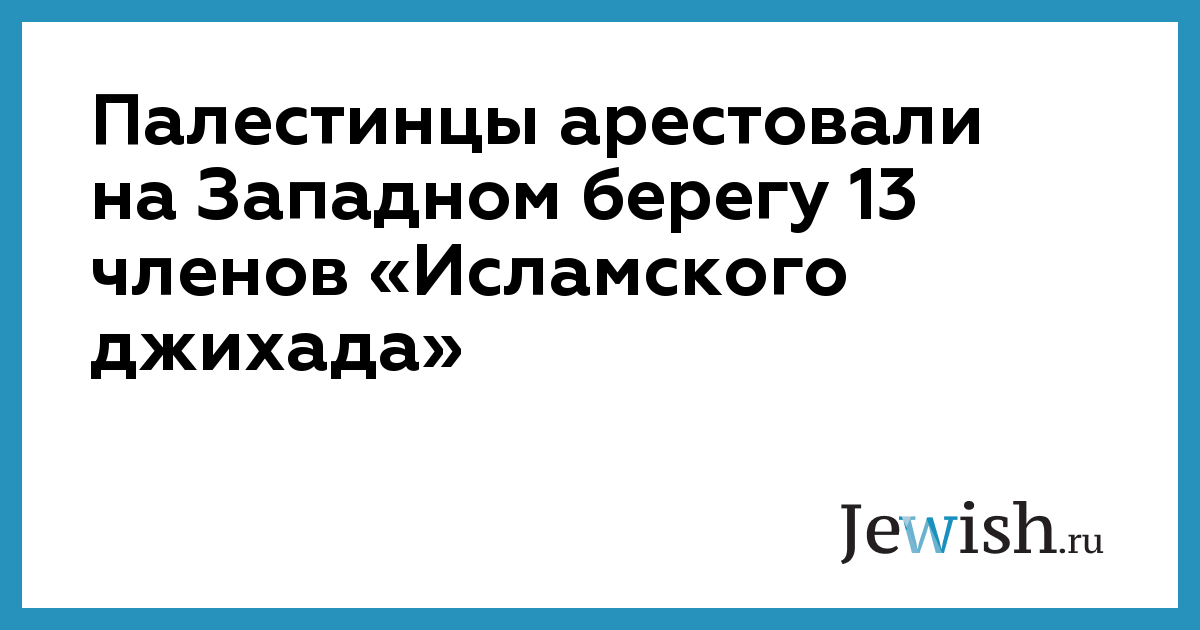 Палестинцы арестовали на Западном берегу 13 членов «Исламского джихада»