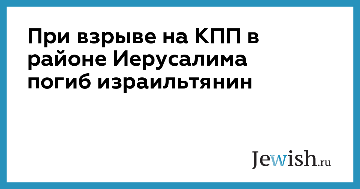 При взрыве на КПП в районе Иерусалима погиб израильтянин