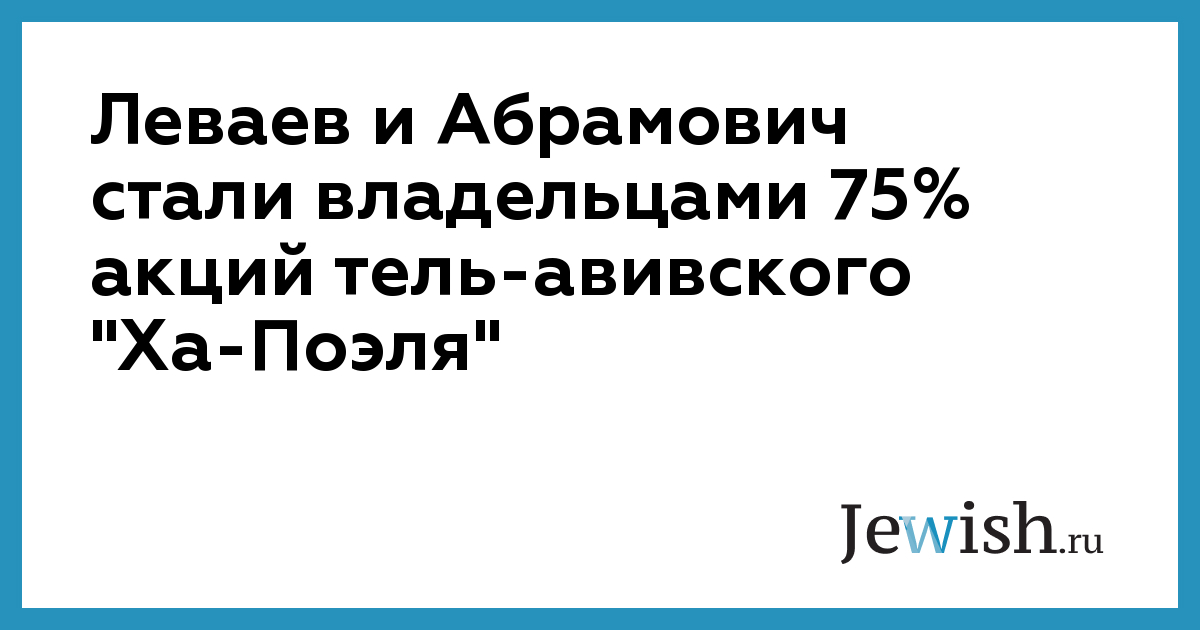 Израильский миллиардер Лев Леваев и губернатор Чукотки Роман Абрамович станут владельцами 75 процентов акций тель-авивского футбольного клуба «Ха-Поэль», при этом 25 процентов акций останутся у нынешних владельцев клуба Сами Сэголя и Моше Теумим, сообщает в четверг 8 декабря газета «Едиот Ахронот».