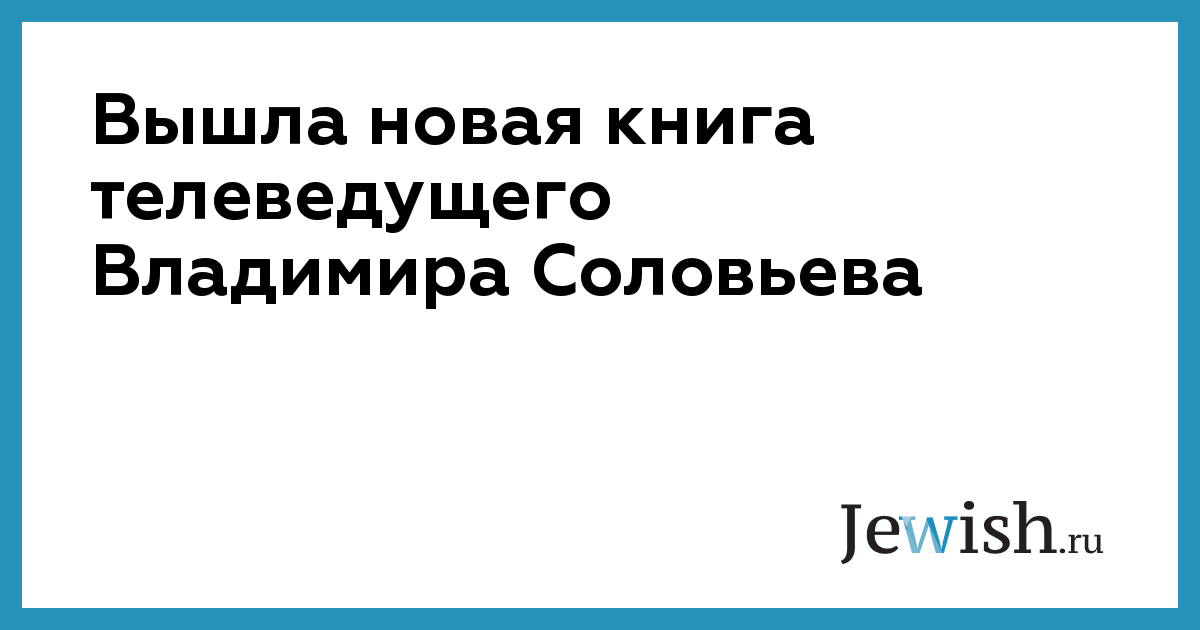 Популярный теле- и радиожурналист, кандидат экономических наук Владимир Соловьев выпустил в свет свою первую книгу публицистики.