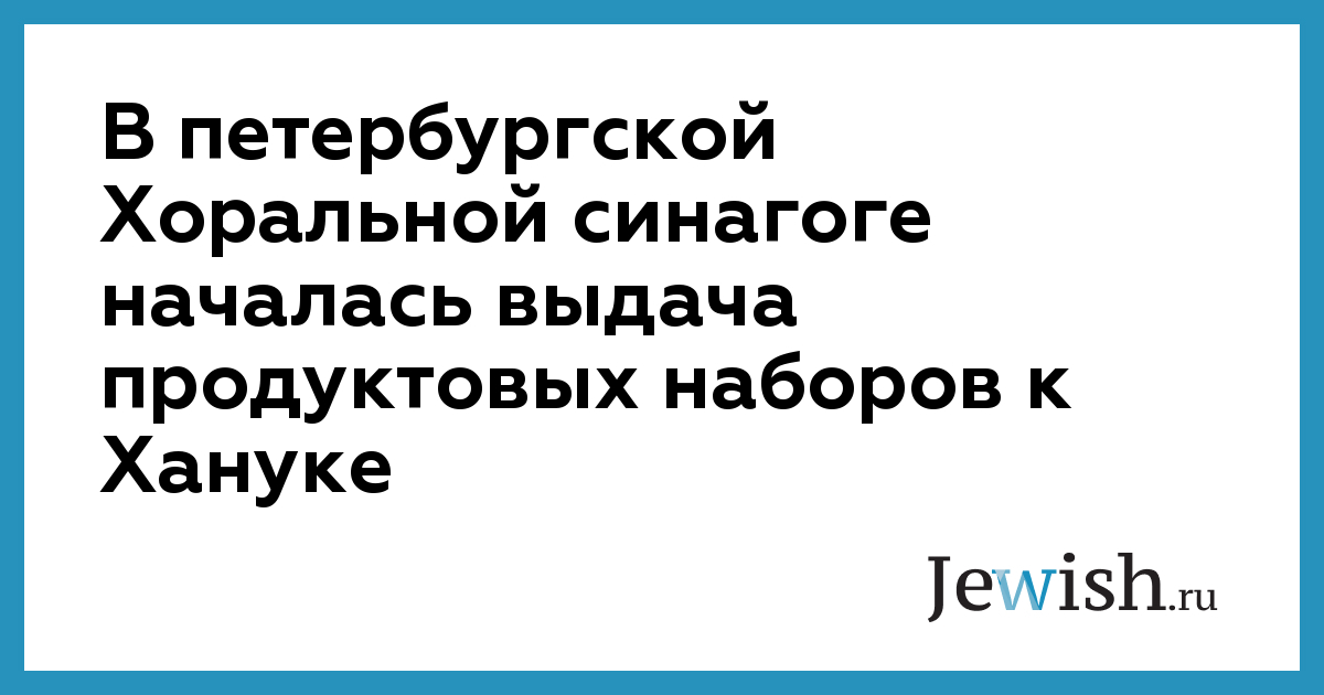 На этой неделе в Большой Хоральной синагоге Санкт-Петербурга началась выдача благотворительных продуктовых наборов к празднику Ханука. Благотворительная акция в Петербурге организована благотворительным центром еврейской религиозной общины.