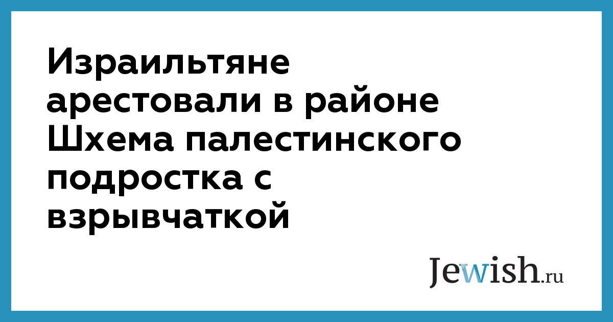 Израильтяне арестовали в районе Шхема палестинского подростка с взрывчаткой