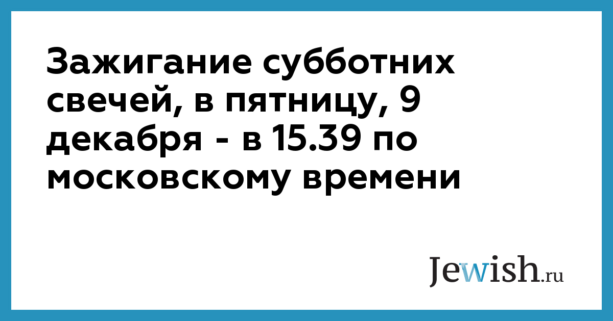 Зажигание субботних свечей, в пятницу, 9 декабря — в 15.39 по московскому времени
