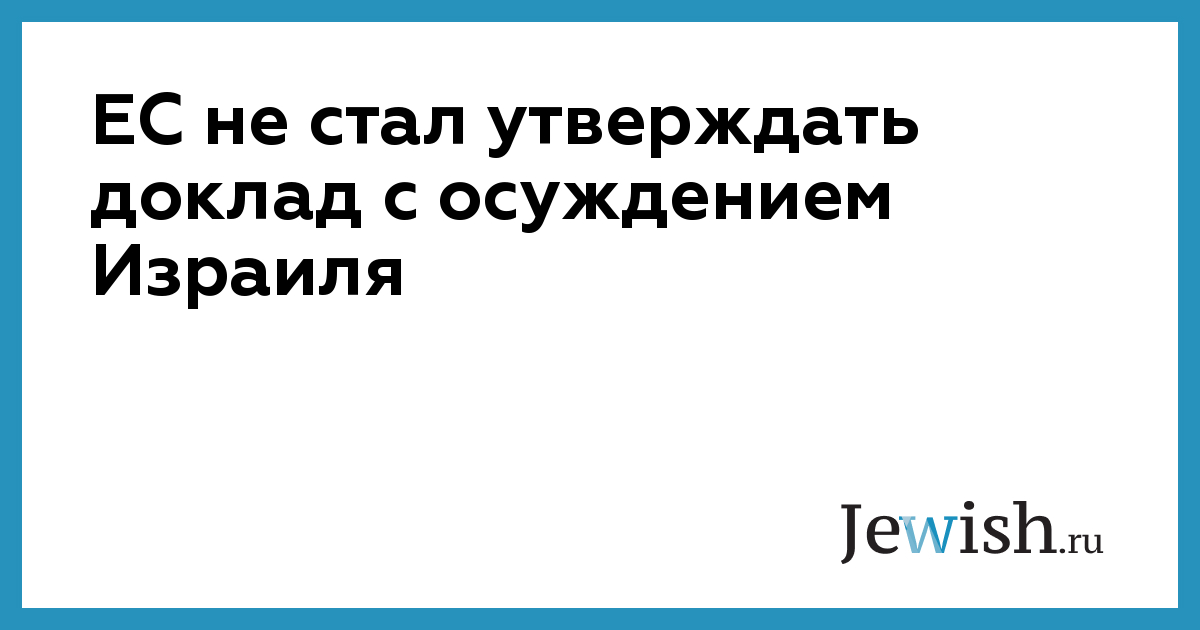 Напомним, что доклад был составлен по заказу ЕС его экспертами и недавно обнародован одной израильской неправительственной организацией. В нем отмечается, что израильские власти делают все, чтобы помешать возможному превращению Восточного Иерусалима в столицу Палестинского государства.