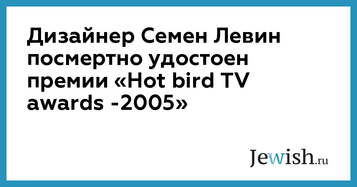 Дизайнер Семен Левин посмертно удостоен премии «Hot bird TV awards -2005». Левин удостоен премии за вклад в развитие спутникового телевидения, сообщает "Эхо Москвы". Церемония награждения лауреатов прошла этой ночью в Турине.
