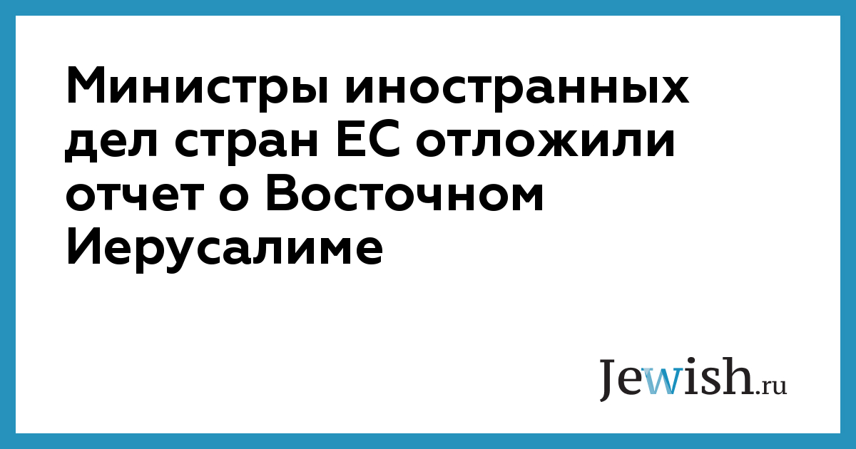 Министры иностранных дел стран ЕС отложили публикацию отчета о Восточном Иерусалиме, который, по мнению ряда экспертов, затрагивает слишком болезненные темы, и может нанести ущерб процессу улучшения взаимоотношений между Евросоюзом и Израилем.