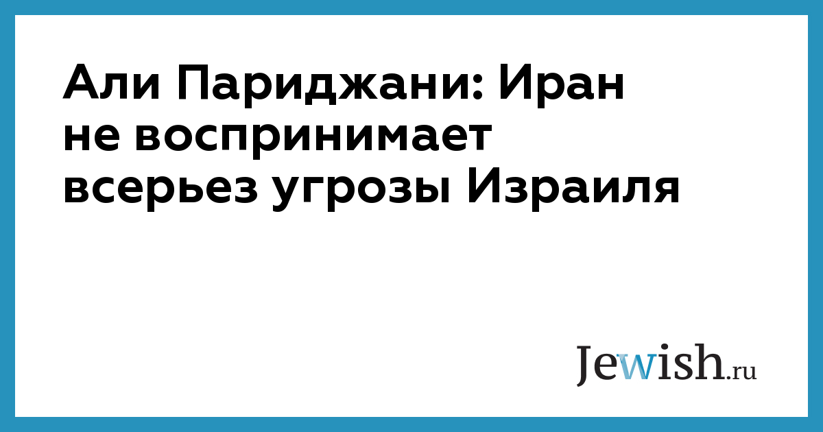 Али Париджани: Иран не воспринимает всерьез угрозы Израиля