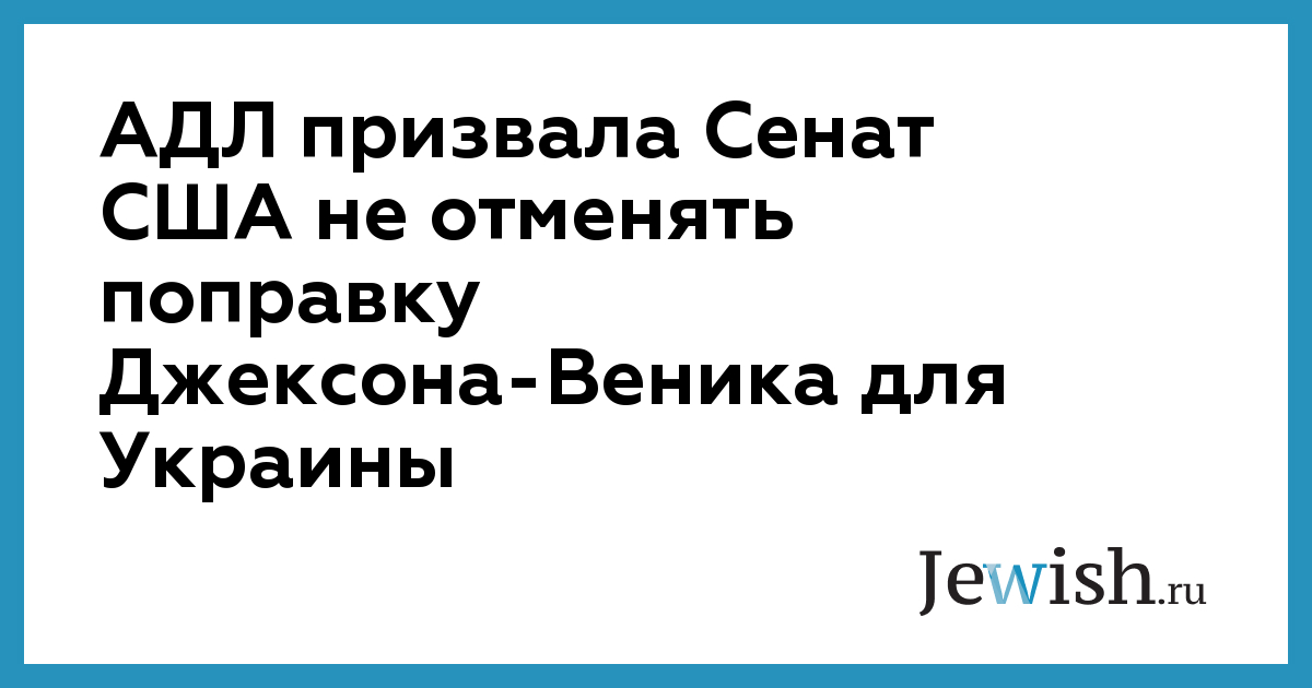 Антидиффамационная лига обратилась к американскому Сенату с требованием отложить отмену поправки Джексона-Веника в отношении Украины в связи с вызывающим обеспокоенность уровнем антисемитизма в стране.