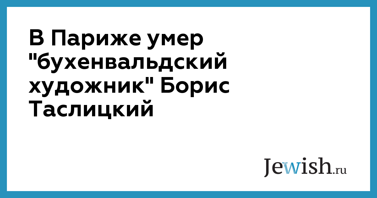 taslickiy.jpgВ Париже на 94 году жизни скончался художник-соцреалист Борис Таслицкий. В годы Второй мировой войны, будучи узником Бухенвальда, он рискуя жизнью, рисовал портреты на обрывках бумаг, украденных из лагерной канцелярии.