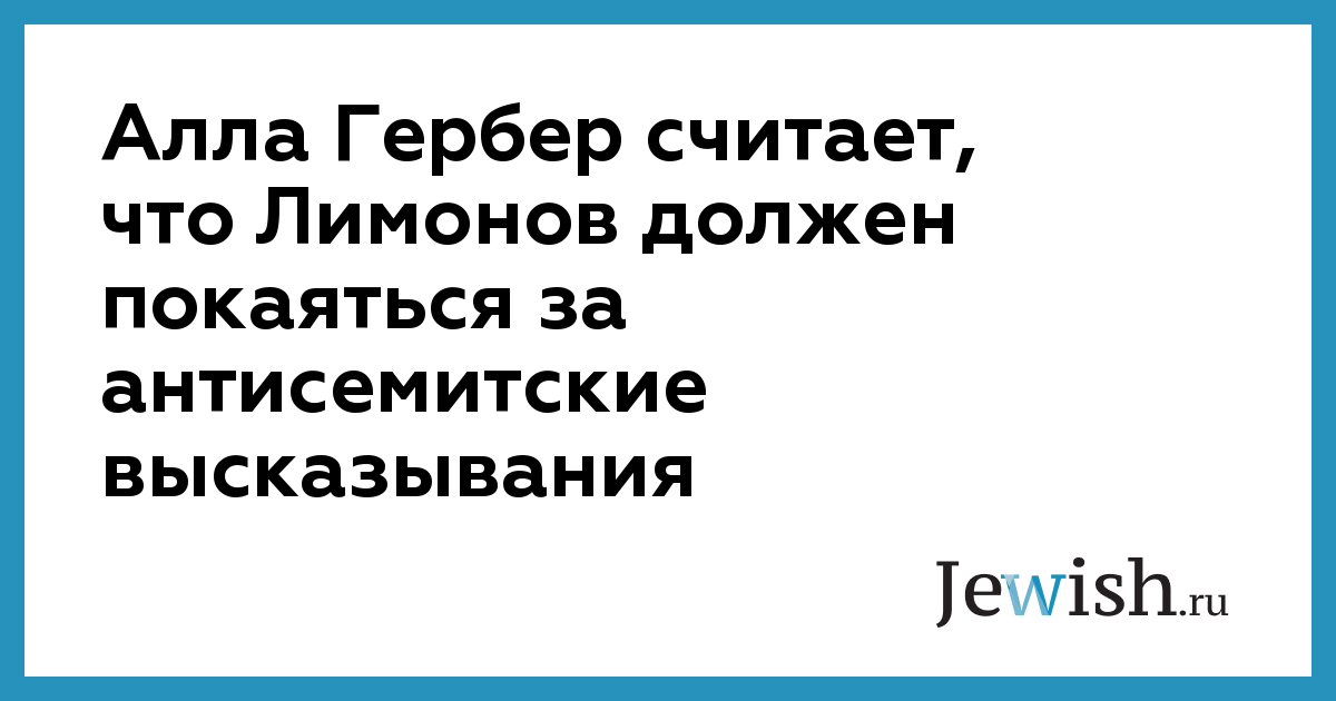 Ветеран правозащитного движения и руководитель фонда «Холокост» Алла Гербер считает, что лидер национал-большевиков Эдуард Лимонов должен покаяться за те антисемитские высказывания, которые он неоднократно произносил за время своей бурной политической карьеры.