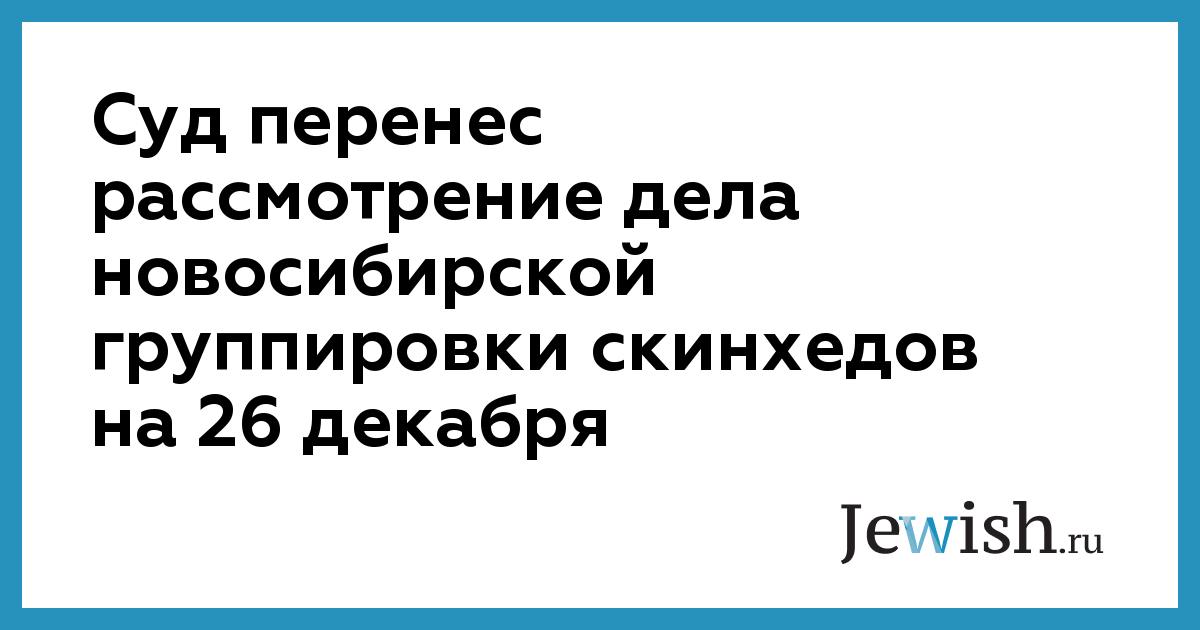 Новосибирский областной суд во вторник перенес рассмотрение дела новосибирской группировки скинхедов на 26 декабря в связи с неявкой одного из адвокатов, передал из зала суда корреспондент агентства "Интерфакс-Сибирь".
