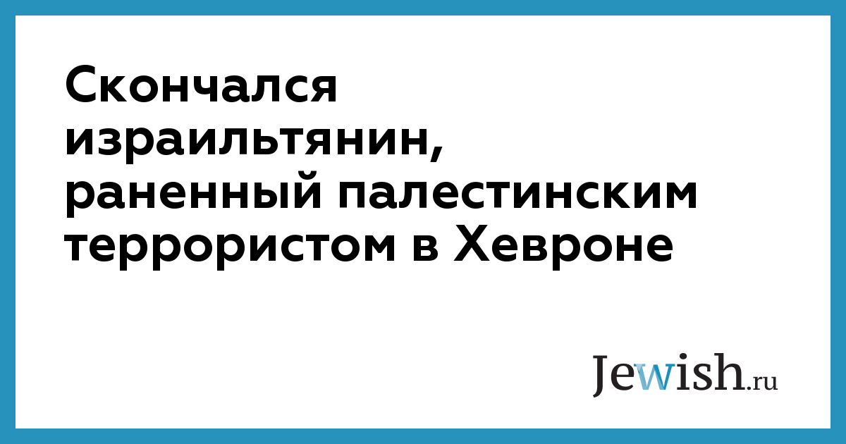 Скончался израильтянин, раненный палестинским террористом в Хевроне