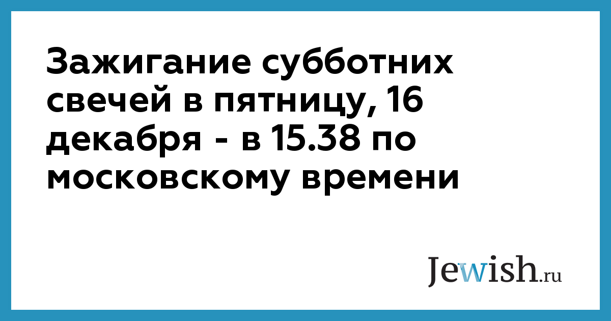 Зажигание субботних свечей в пятницу, 16 декабря — в 15.38 по московскому времени