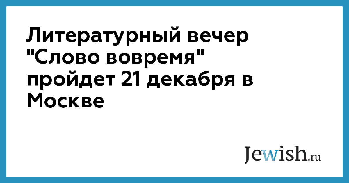 Литературный вечер "Слово вовремя" пройдет 21 декабря в Москве