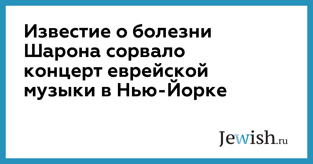 Известие о госпитализации премьер-министра Израиля Ариэля Шарона всполошило слушателей концерта еврейской музыки, прошедшего в Нью-Йорке, сообщает MIGnews.com.