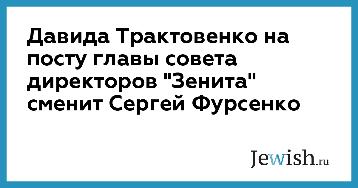 Давида Трактовенко на посту главы совета директоров "Зенита" сменит Сергей Фурсенко