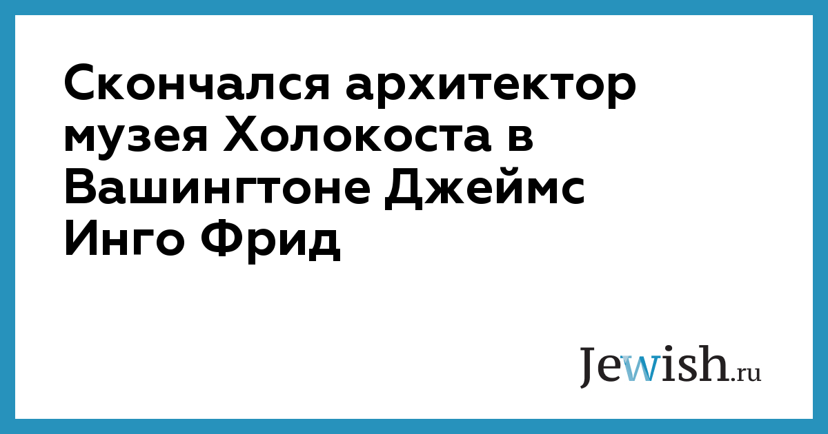 Архитектор Джеймс Инго Фрид, по проекту которого был построен музей-мемориал Холокоста в Вашингтоне, скончался 15 декабря в возрасте 75 лет. Музей сыграл важную роль в воспитании толерантности и изучении уроков Холокоста в США.