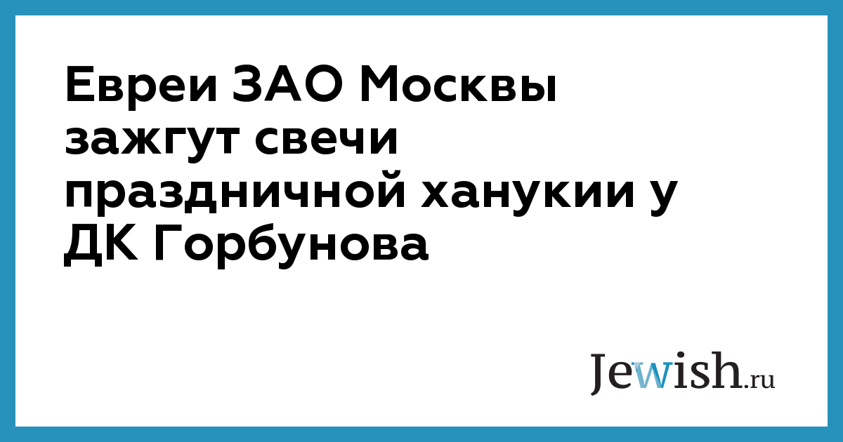 Евреи ЗАО Москвы зажгут свечи праздничной ханукии у ДК Горбунова