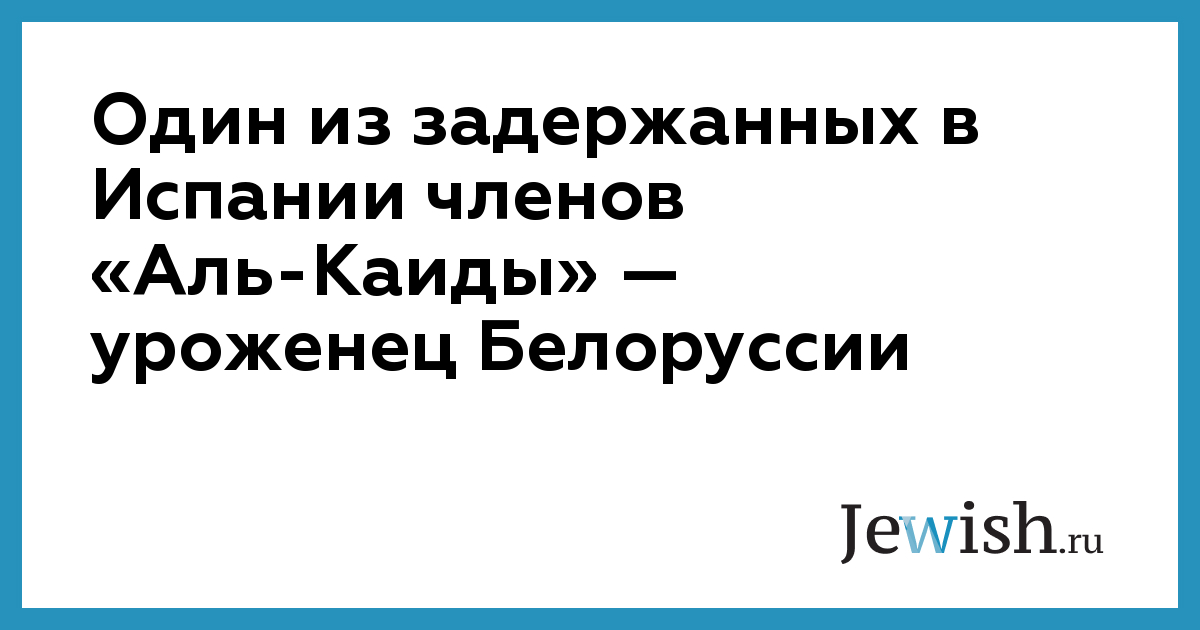 Один из 16 членов ячейки международной террористической организации «Аль-Каида», задержанных в понедельник в Испании, является уроженцем Белоруссии. Об этом сообщил министр внутренних дел Испании Хосе Антонио Алонсо (Jose Antonio Alonso), подводя итоги проведенной испанской полицией операции против исламистских террористов, сообщает РИА Новости.