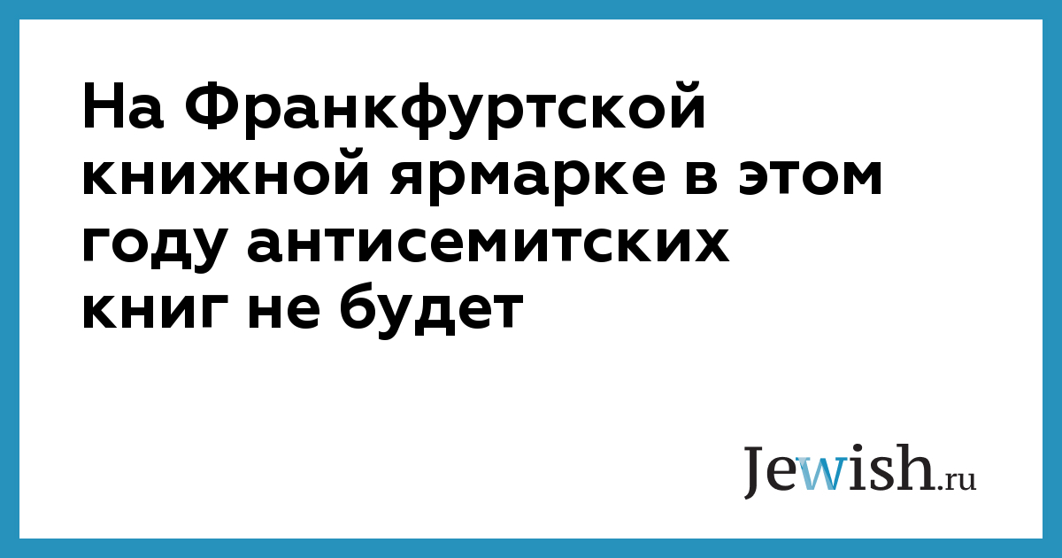 На Франкфуртской книжной ярмарке в этом году антисемитских книг не будет