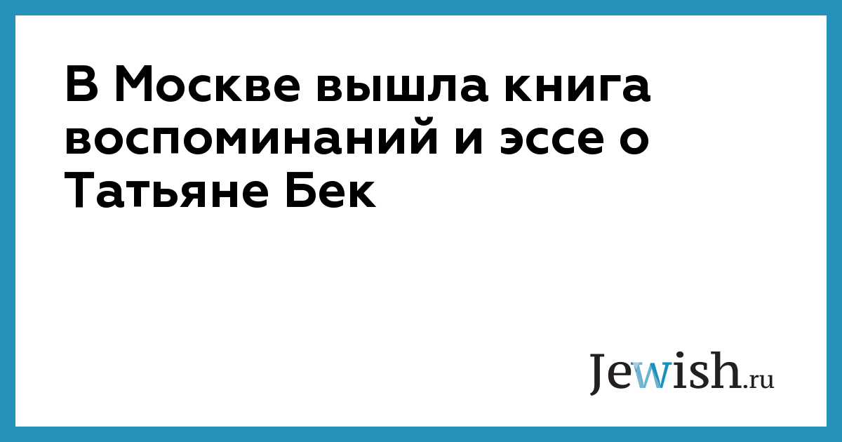 В Москве вышла книга воспоминаний и эссе о Татьяне Бек